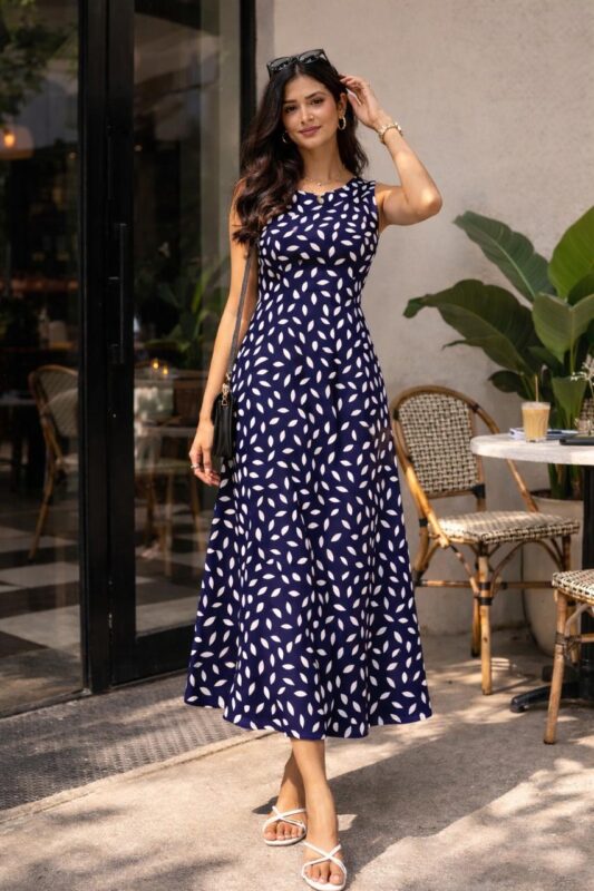 Blue Dotted A-Line Dress