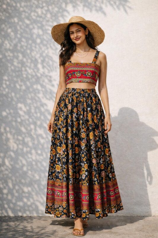 Retro and Floral Prints: Retro-inspired prints and charming floral patterns are trending, offering a nostalgic yet fresh look. Mix and match these prints with modern pieces like distressed denim or cropped jackets to create a trendy and effortless outfit (Windsor).