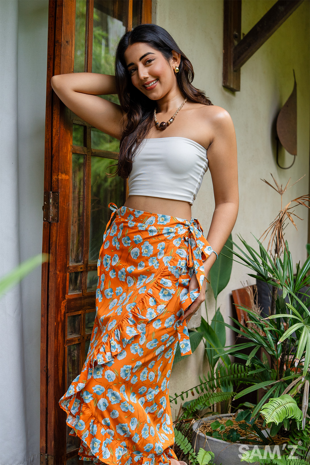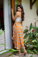 Orange floral wrap skirt