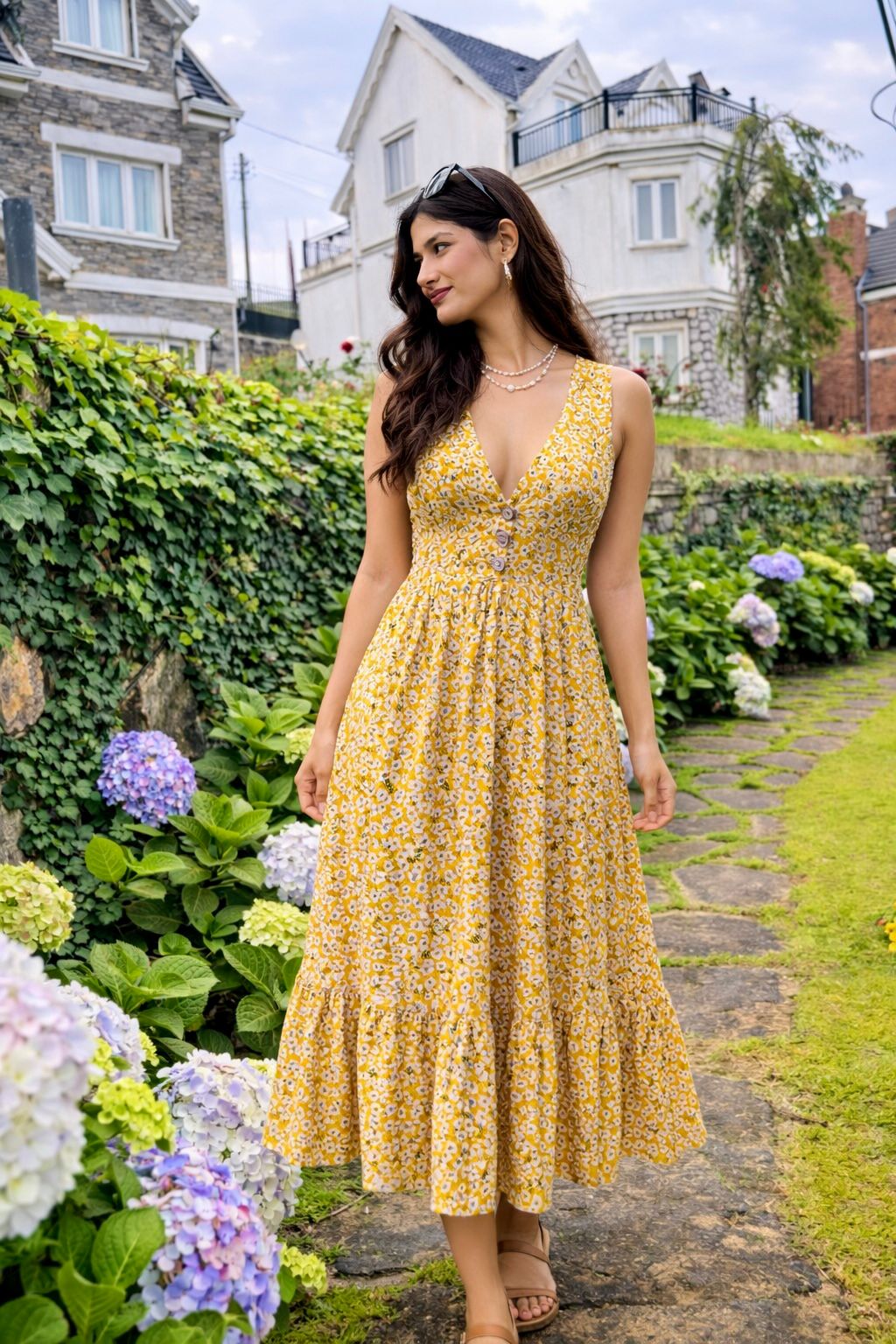 Yellow Ditsy Floral Dress